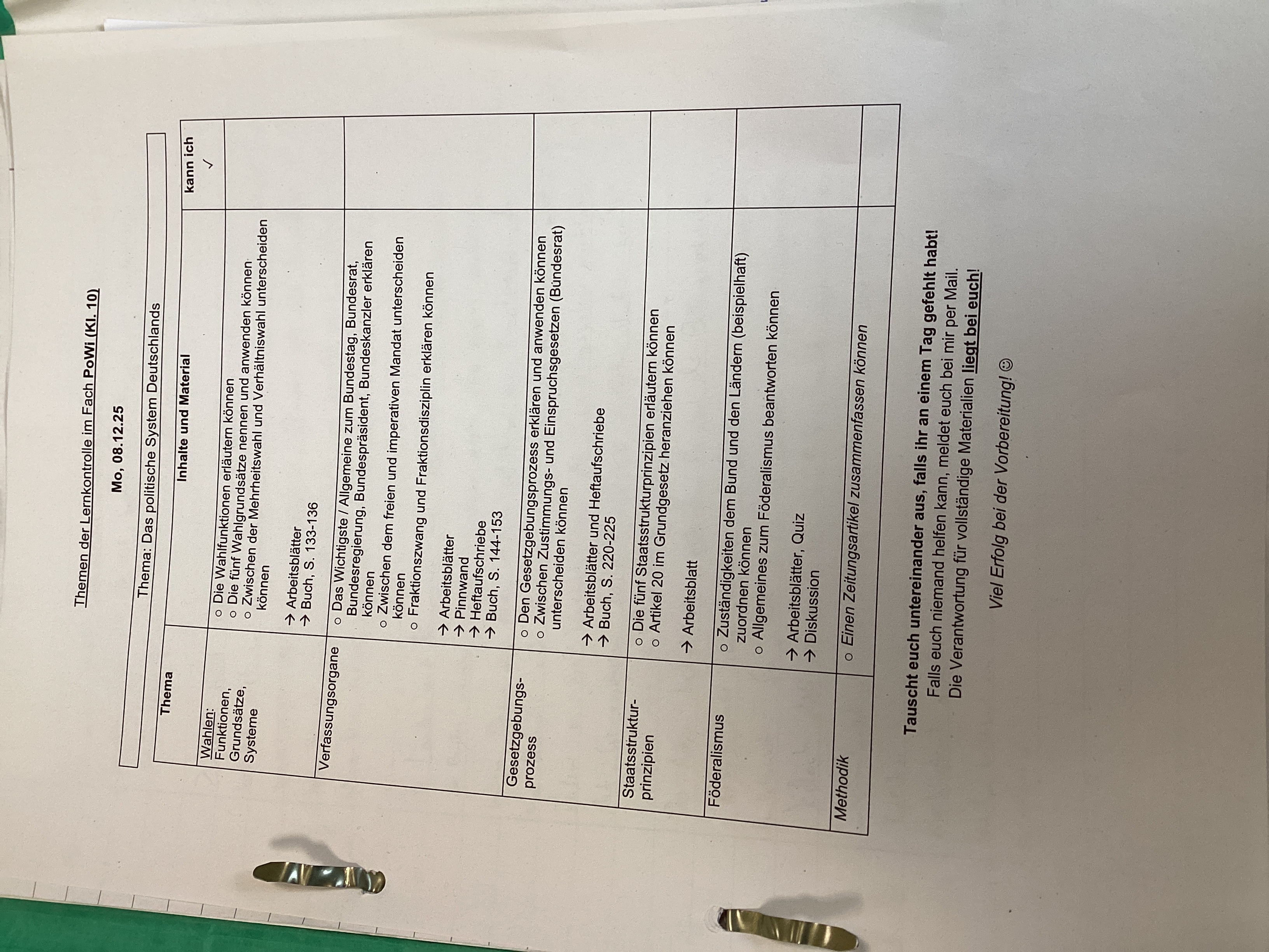 | 7. Stunde | PoWi | 0 | Tagesschau-Moderation von Jannik und Amin | | Premium | |